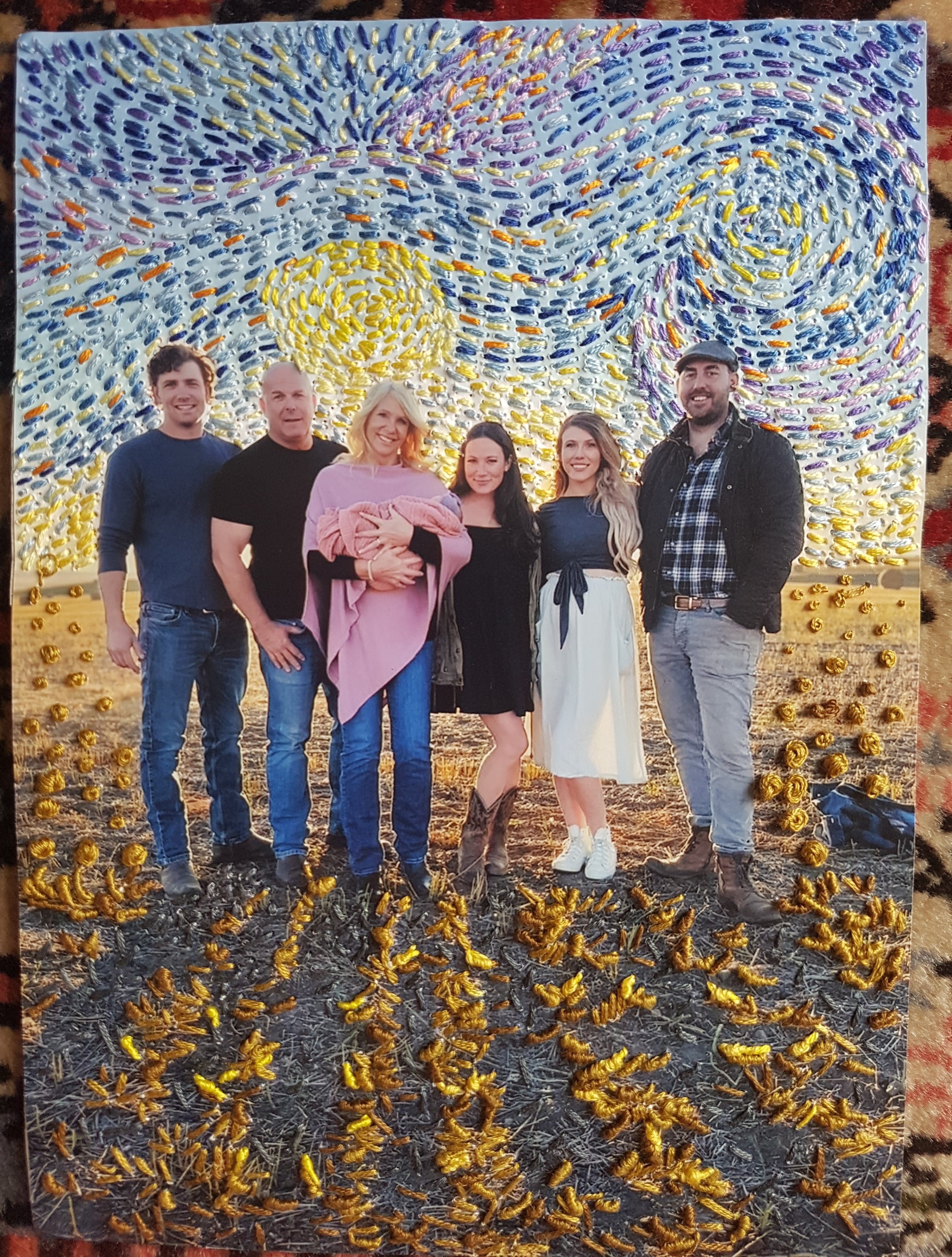 I believe every photo holds a story, a moment, and a feeling. I take your cherished images and breathe new life into them by adding hand-embroidered elements like vibrant flowers, whimsical hearts, intricate wreaths, and more. Whether it’s capturing the playful joy of a family moment, the romance of a wedding, the adventure of a trip, or the remembrance of a lost loved one, my embroidery enhances the spirit of your photo. From nostalgic memories to monumental achievements, I craft personalized art that brings depth and emotion, turning your photos into timeless treasures that speak to the heart.
